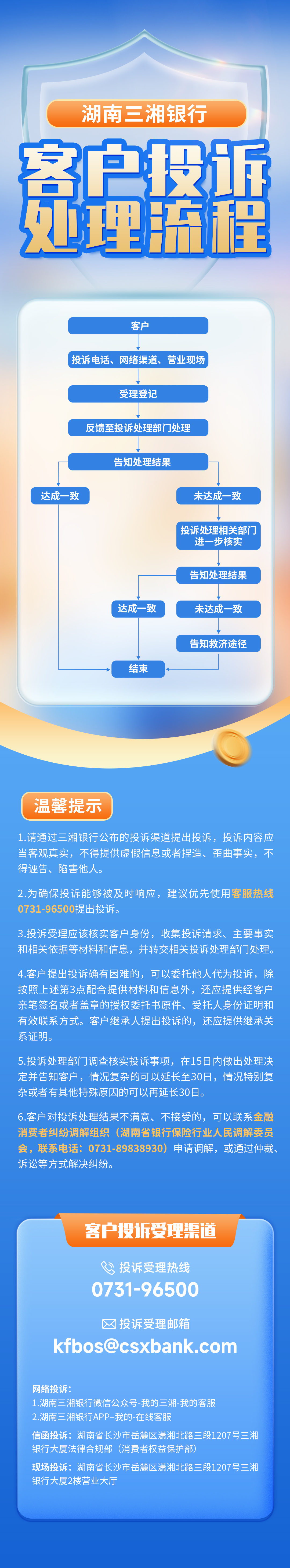 信函渠道:湖南省长沙市岳麓区潇湘北路三段1207号三银商业中心A栋法律合规部(消费者权益保护部)