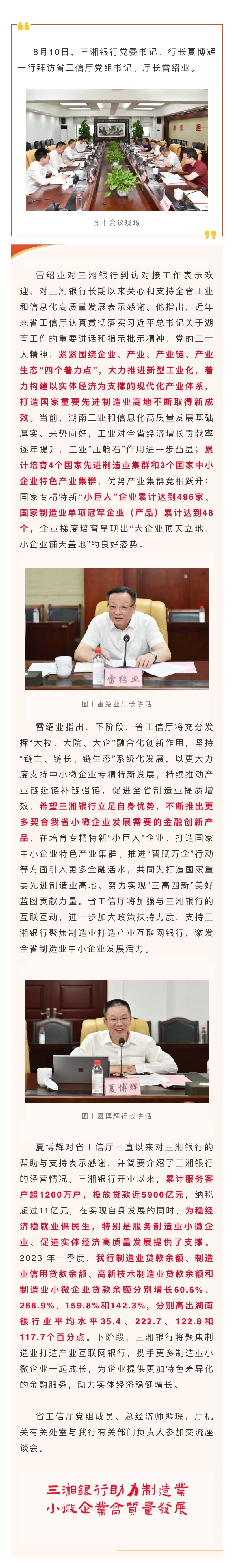 夏博辉一行拜访省工信厅党组书记、厅长雷绍业